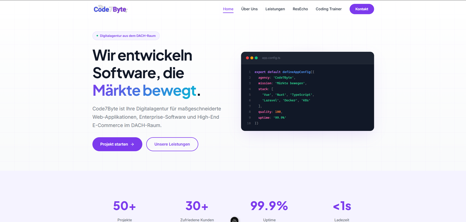 Code7Byte ist Ihre Digitalagentur für maßgeschneiderte Web-Applikationen, Enterprise-Software und High-End E-Commerce im DACH-Raum.